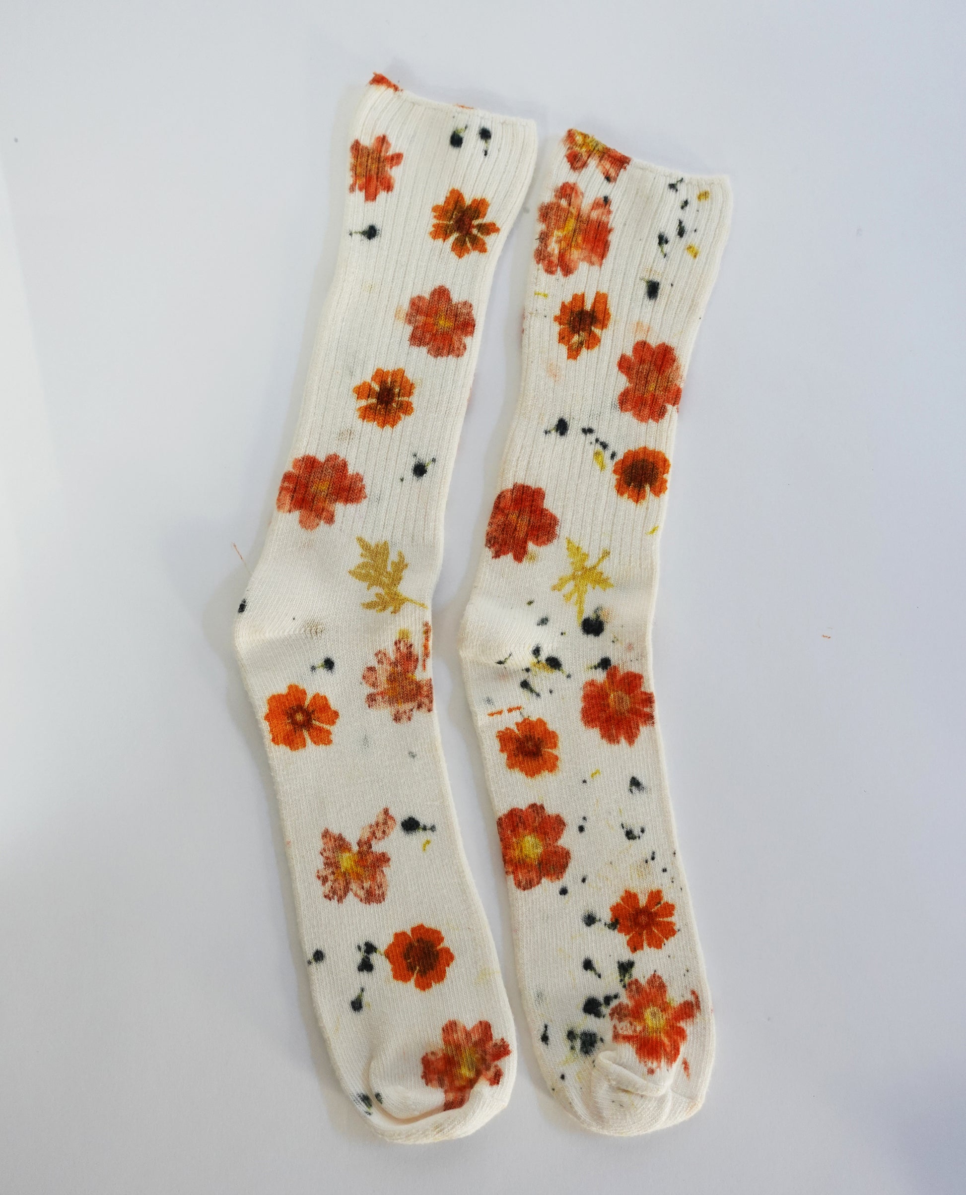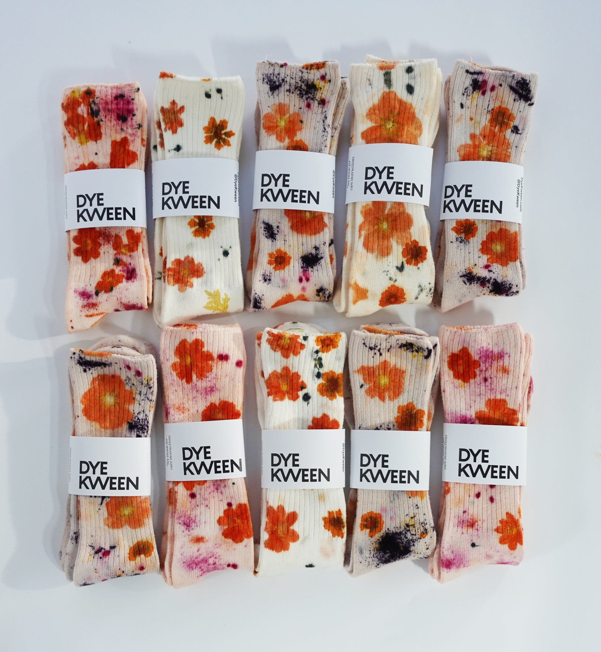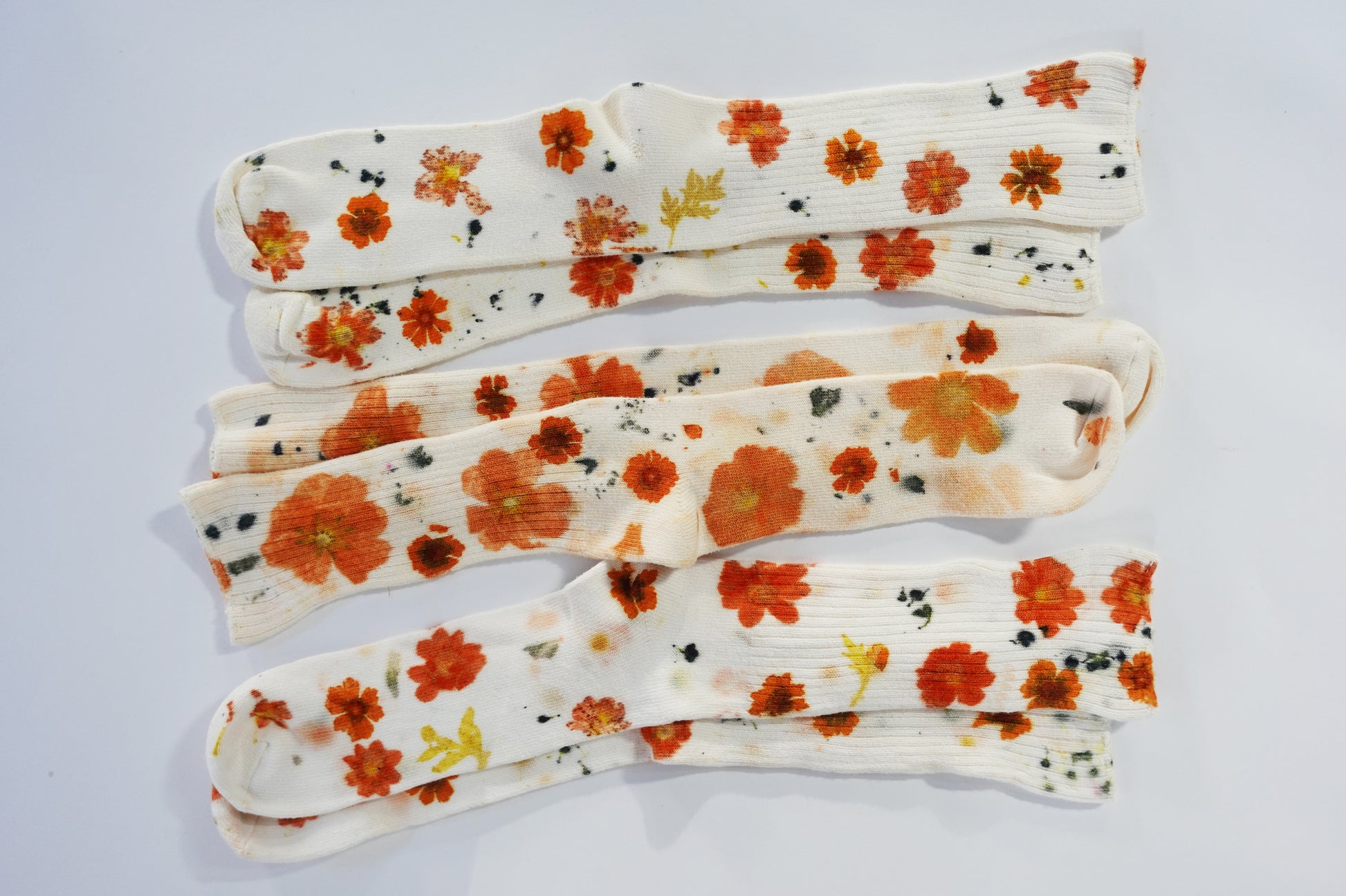 Ce sont les chaussettes les plus douces que vous aurez jamais ressenties. Fabriqué à partir de rayonne de bambou durable, teinté avec du coréopsis sunburst, des fleurs de souci et d'autres plantes cultivées sur place.