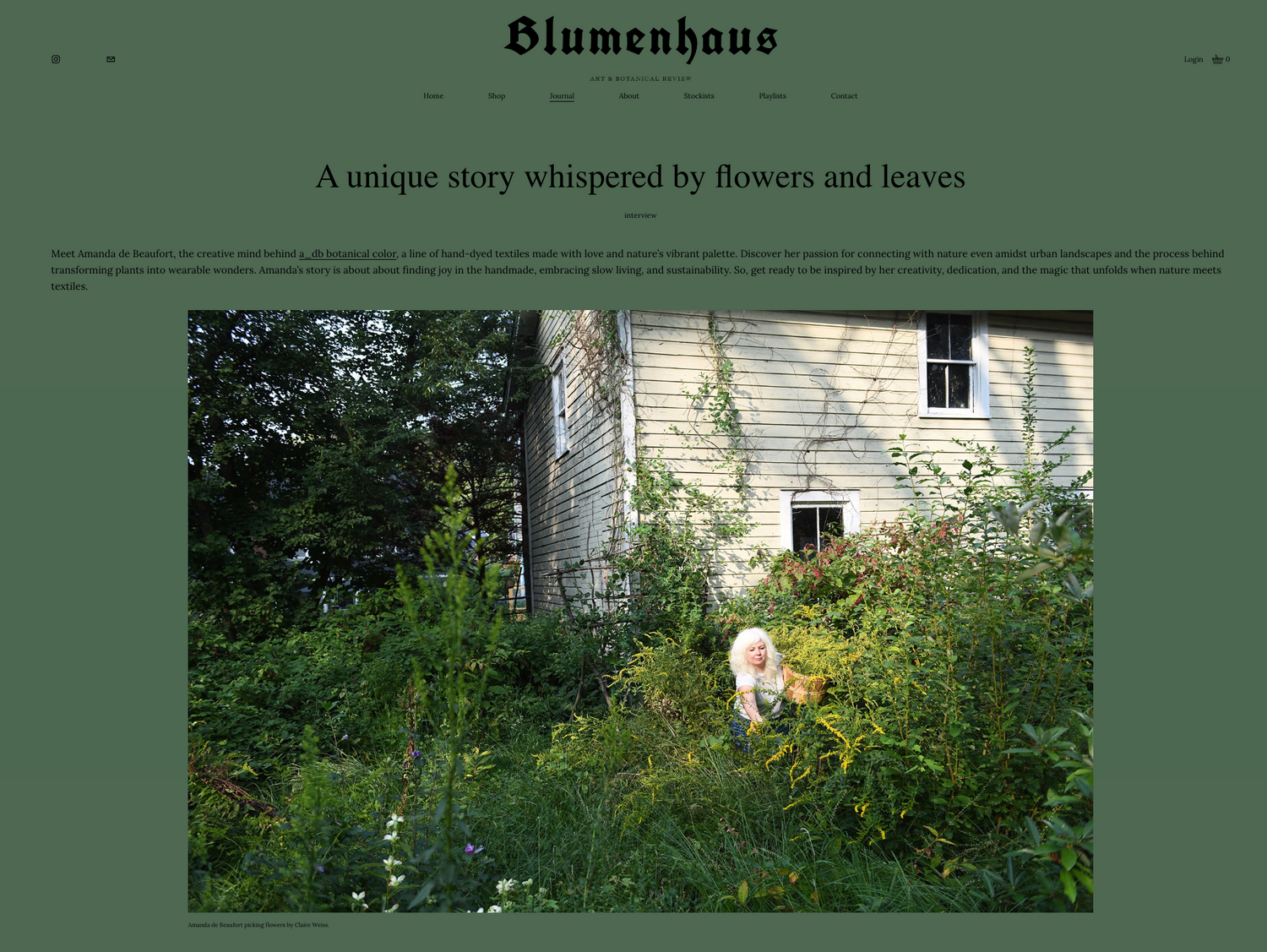 "A unique story whispered by flowers and leaves," Blumenhaus interviews natural dyer Amanda de Beaufort.