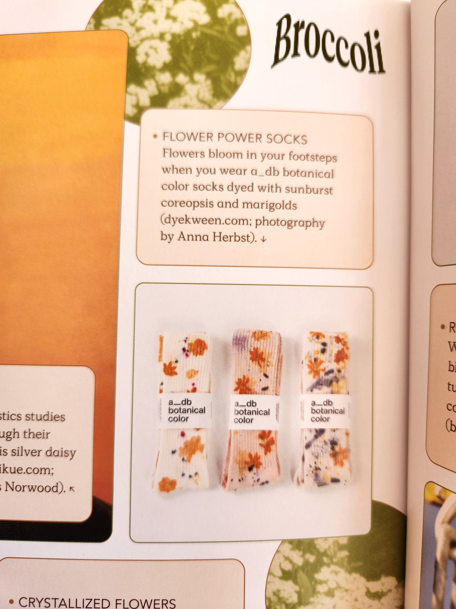 Our Flower Power socks are featured in the print magazine Broccoli.