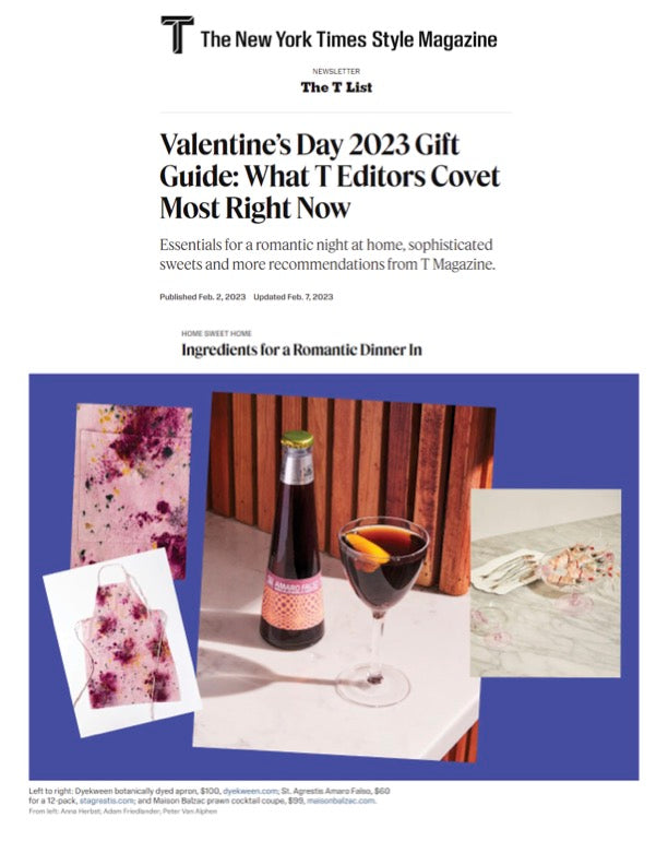 Essentials for a romantic night at home, sophisticated sweets and more recommendations from T Magazine features a_db botanical color's apron.