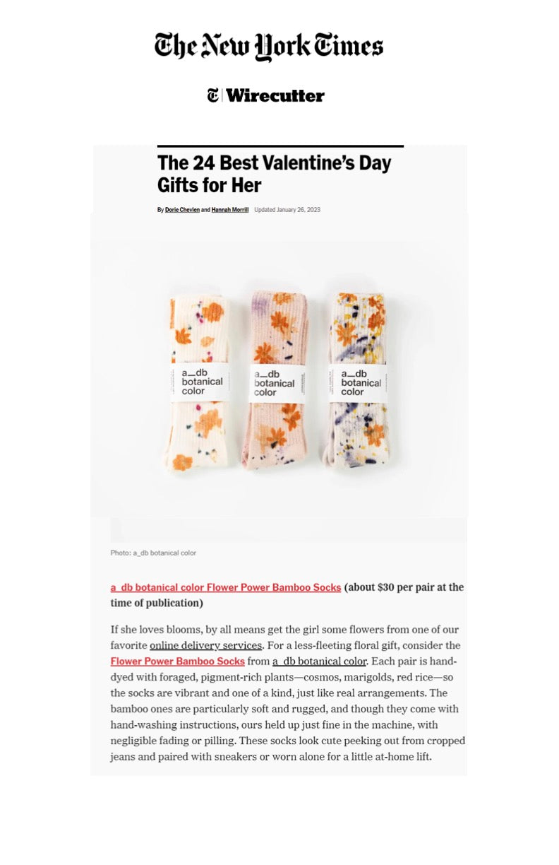 Our Flower Power socks are featured in "The 24 Best Valentine's Day Gifts for Her"